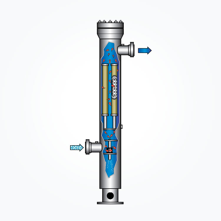 Bằng cách sử dụng bộ đóng gói đường kính đầy đủ, phần tử COALESCER có thể được thay thế trong thời gian và công sức ngắn nhất. Anh ấy hoặc lưỡi kiếm Demister hoàn toàn không cần bảo trì, tự làm sạch và không chứa các bộ phận thay thế hoặc chuyển động, dẫn đến tắt máy.